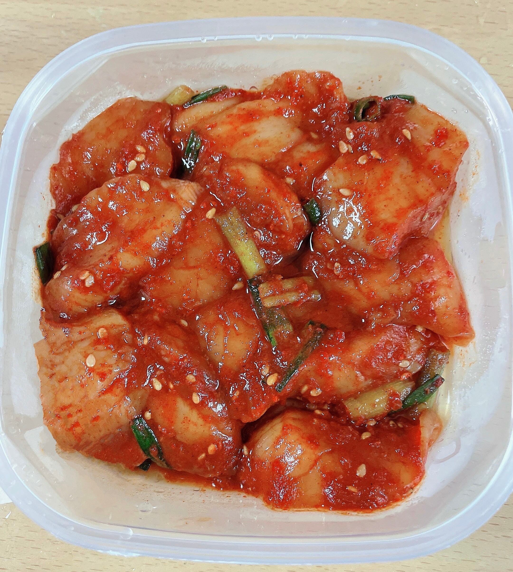 大粒ホタテ貝柱がたっぷりと入った、贅沢な味わいのキムチです。ヤンニョムと呼ばれる特製のタレで漬け込まれており、辛さと旨味が絶妙に調和しています。食べ応えのあるボリューム、そしてホタテのプリプリとした食感をお楽しみいただけます。